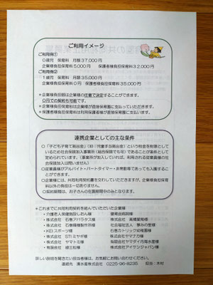 企業様負担保育料5.000円 保護者様負担保育料30.000円