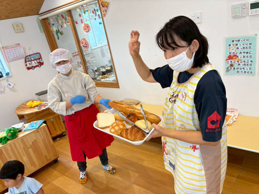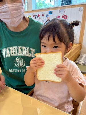 焼きあがったパンが給食に出ると、みんな真っ先にパンを食べていました。子ども達に「どんな味がする?」と「おいしい~😊」と笑顔で答えてくれました。