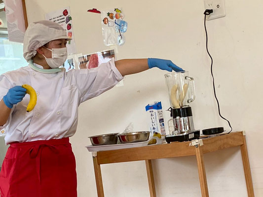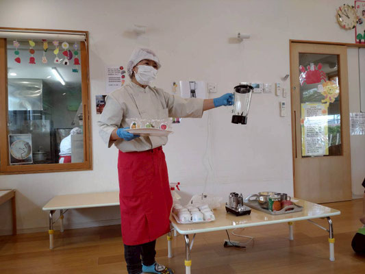 はじめに栄養士の先生がパフェの作り方を見せてくれました♪