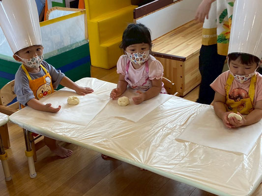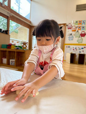 友だちと一緒に生地をこねたり、いろんな形を作って楽しんでいました☺