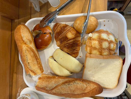 (用意したパンは、フランスパン・食パン・あんぱん・クロワッサン・メロンパン・カレーパンなどです)