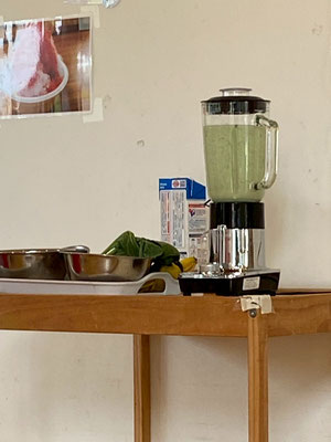 ミキサーにはバナナ・牛乳・小松菜などを入れて作りました。