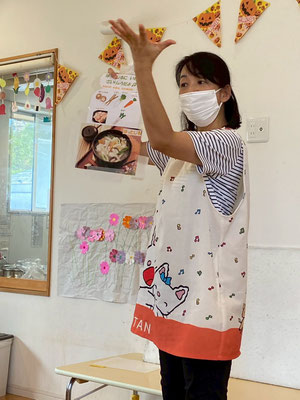 はじめに栄養士の先生に作り方を見せてもらい、自分達で作ってみました。
