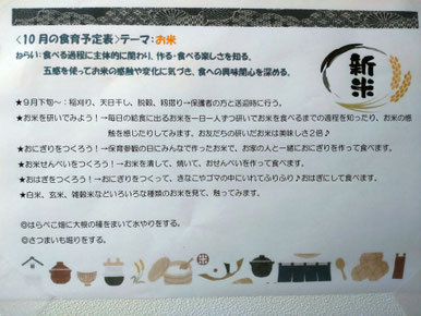 なつやさいを使い漬物やおにぎりを作る予定です。また保育園で栽培している野菜の観察・収穫も行います☺